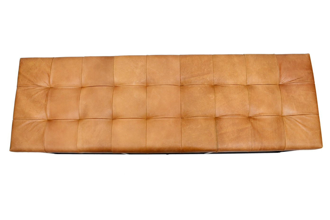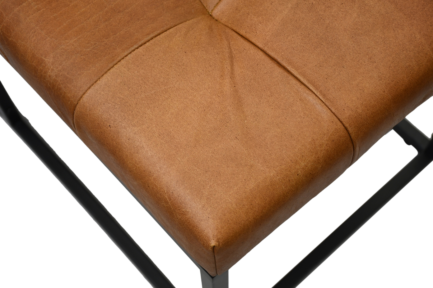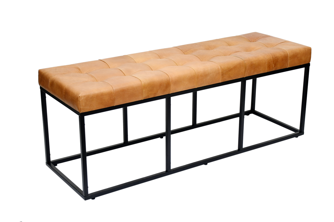 Bring modern elegance to your space with this handcrafted industrial bench, blending rustic warmth with urban sophistication. The seat is upholstered in genuine leather with natural textures and a grid-tufted design for comfort and style.