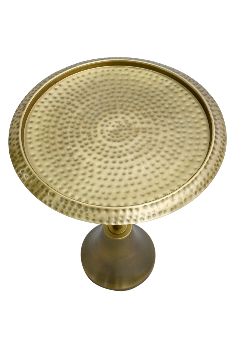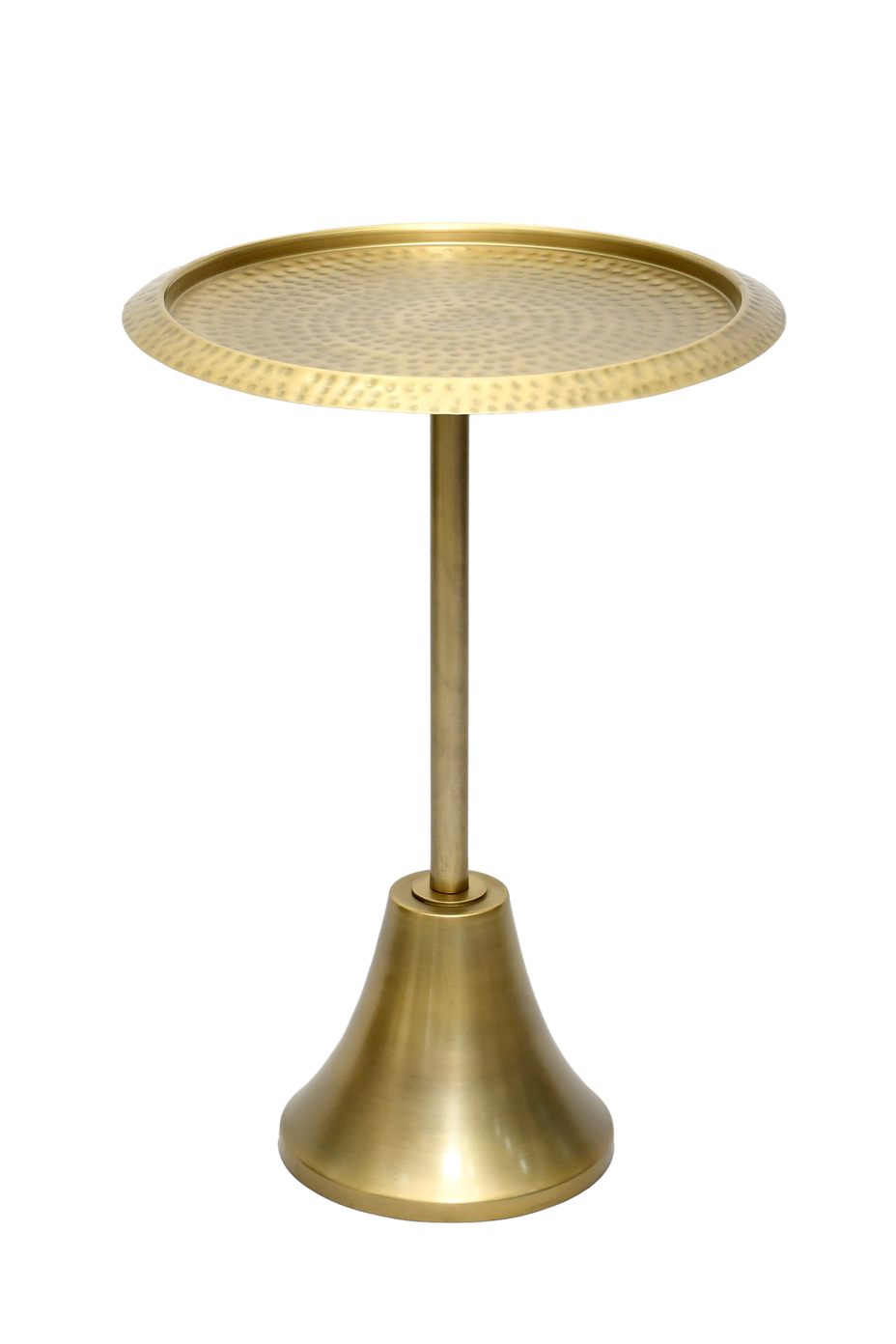 Bring modern elegance and artisanal charm to your space with the Marlo Metal Side Table. Crafted from durable metal, it features a sleek round top with a hand-hammered texture and a flared pedestal base in a lustrous gunmetal finish. Compact yet sturdy, it’s ideal for holding drinks, books, or décor next to a sofa, chair, or bed.