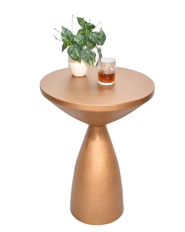 Add a touch of contemporary elegance to your living space with this striking gold accent table. Featuring a sculptural, hourglass-inspired base and a smooth, round tabletop, this piece seamlessly blends artistic design with practical functionality. Its metallic gold finish brings warmth and sophistication, making it a perfect focal point in a living room, bedroom, or lounge area. Compact yet eye-catching, it’s ideal for displaying décor, plants, or drinks, adding style and versatility to any setting.