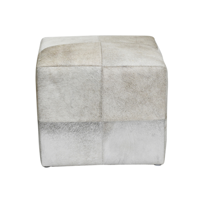 Add style and function to your home with this handcrafted cowhide cube pouf. Featuring a unique patchwork design in soft neutral tones, each piece showcases natural color and texture variations. Perfect as a footrest, extra seat, or decorative accent, it complements modern, rustic, and Scandinavian interiors.