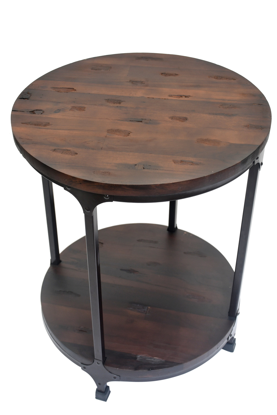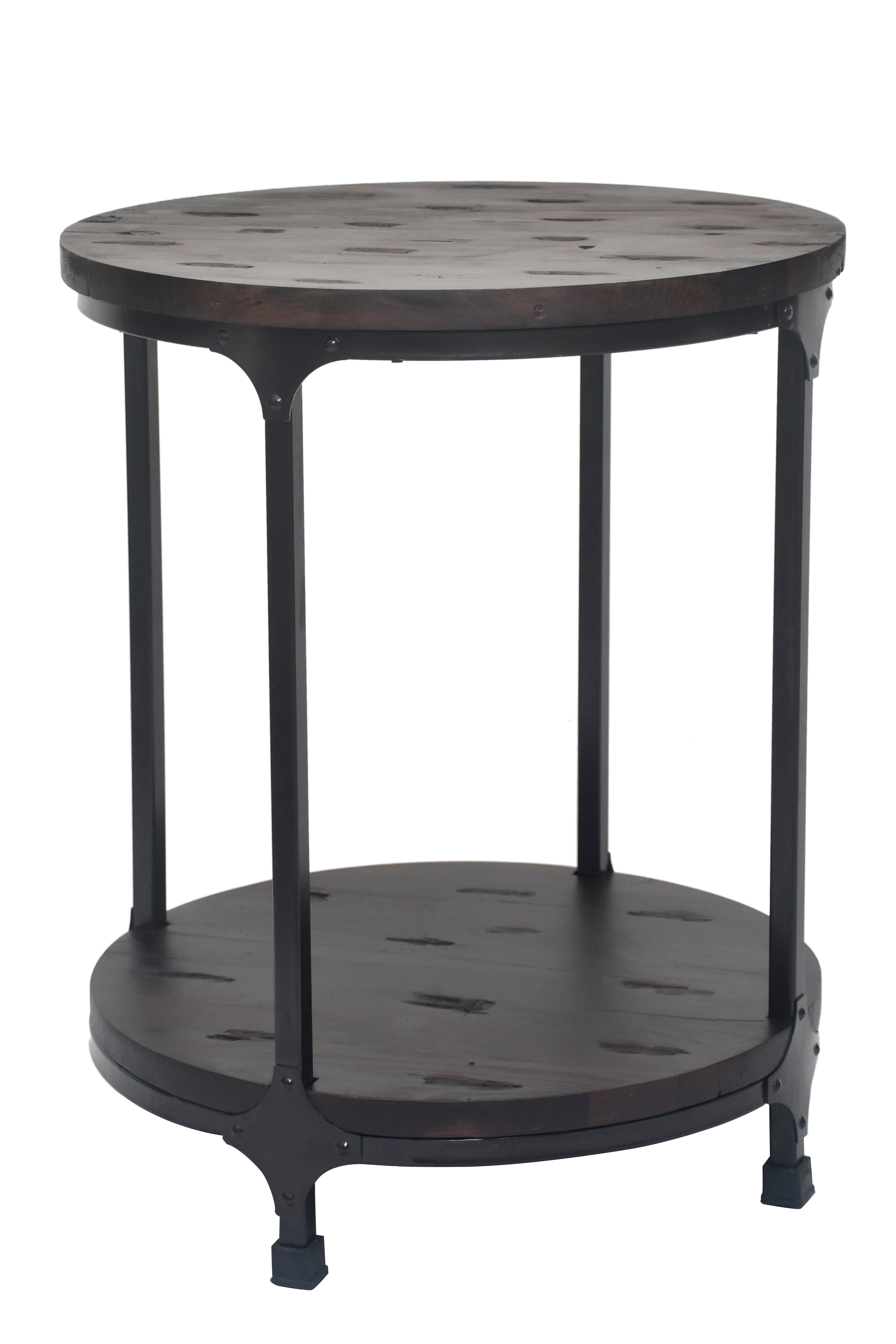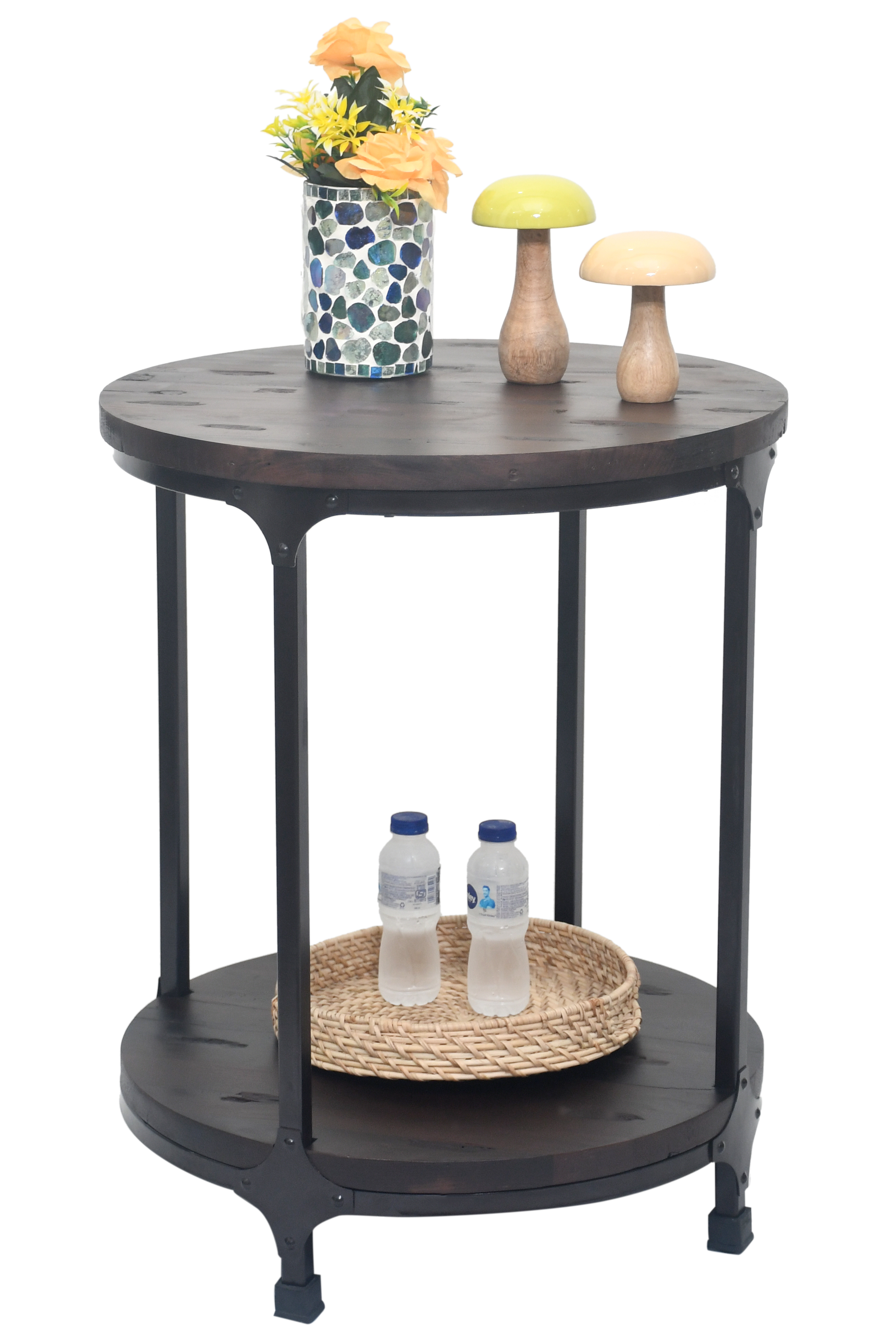 Elegant round side table with sturdy metal frame and dual-shelf design – perfect for showcasing décor and everyday essentials