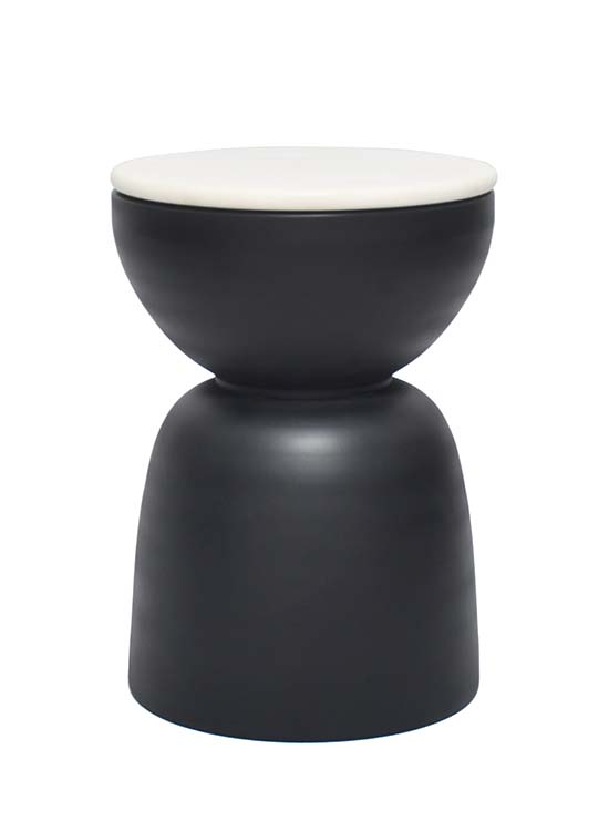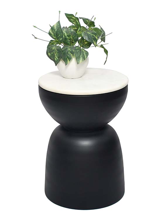 This elegant black side table features a sleek white top that beautifully contrasts with its