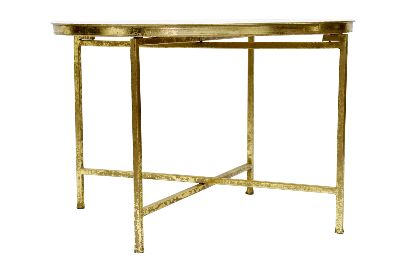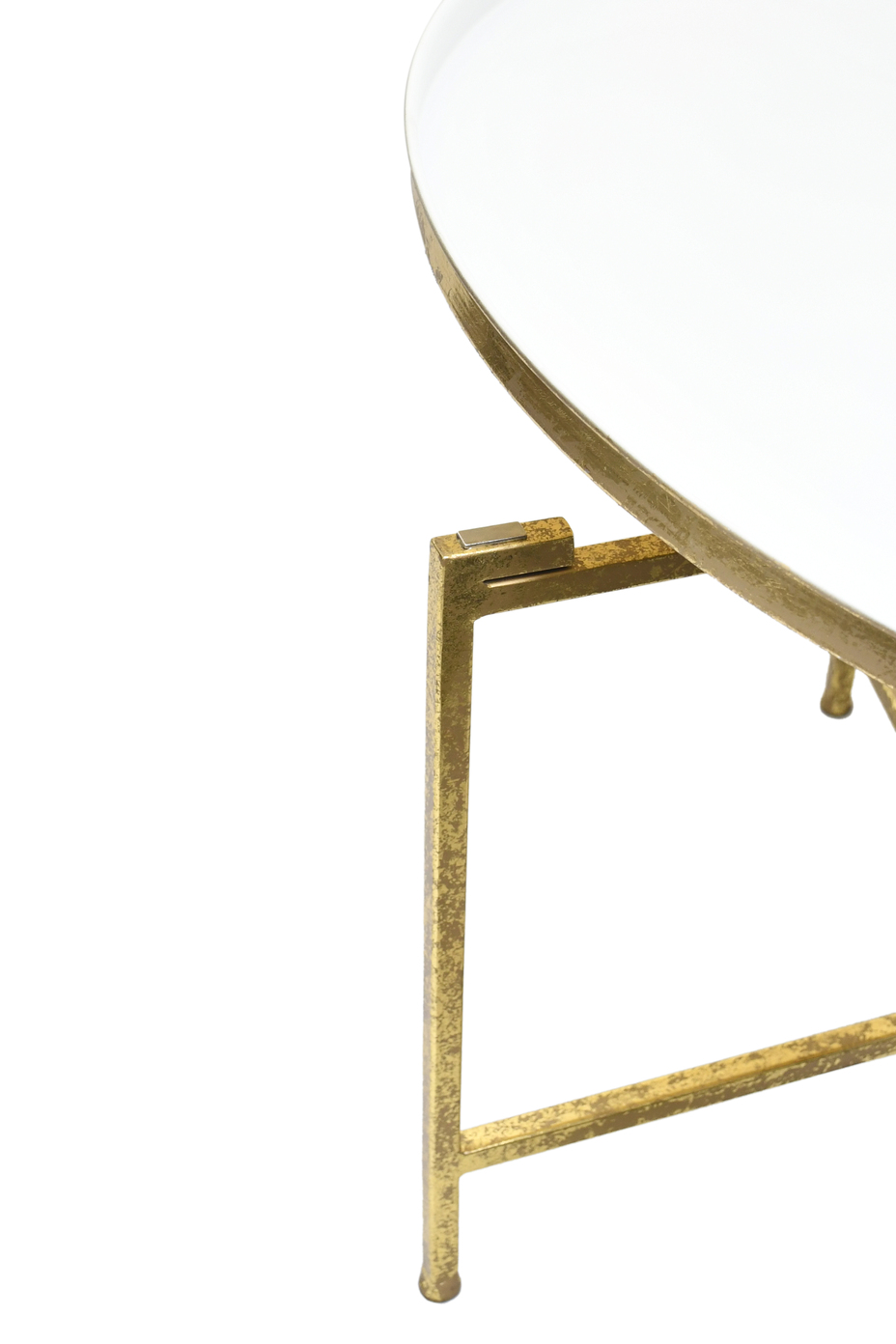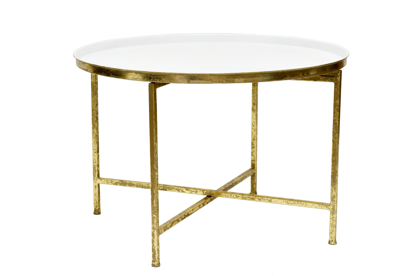 Bring timeless elegance into your home with the Elara Gold & White Coffee Table. This stunning piece combines a hand-forged iron frame finished in distressed gold with a smooth, white enamel round top, creating a sophisticated contrast that feels both modern and classic. The slim, open silhouette keeps your space light and airy, while the crossbar stretcher adds stability without sacrificing style.